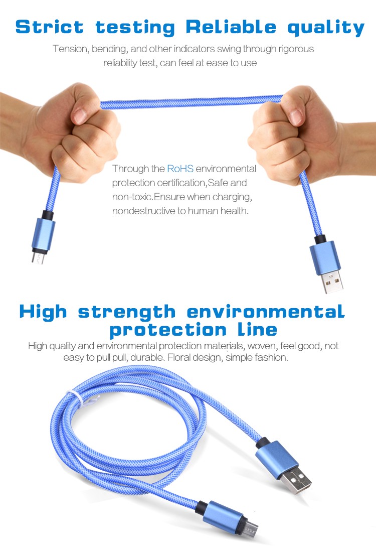 Hotselling Samrtphone Micro USB Cable, High Speed Nylon Braided Micro USB Cable/
