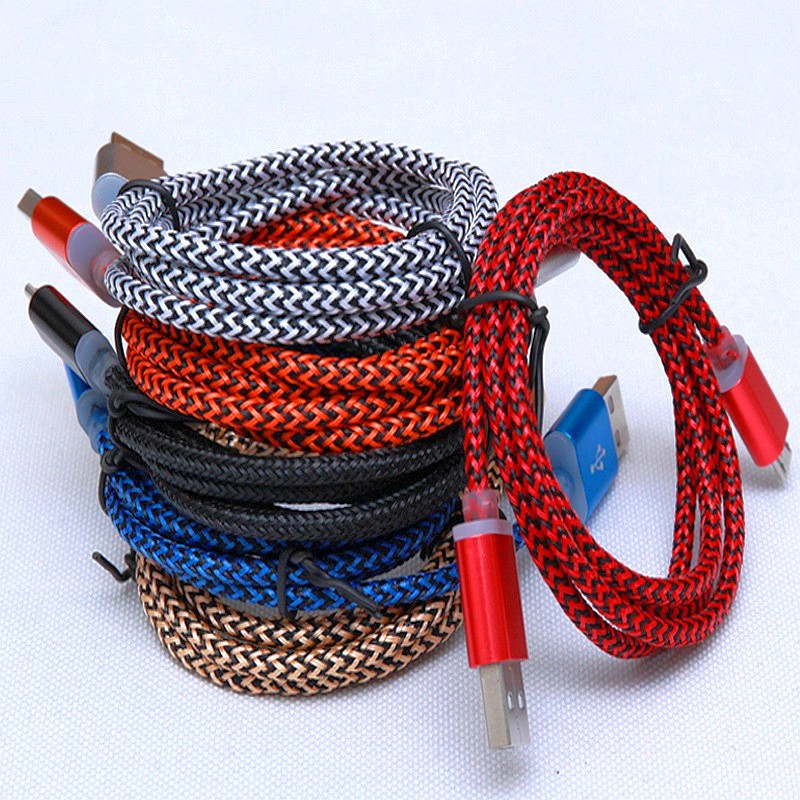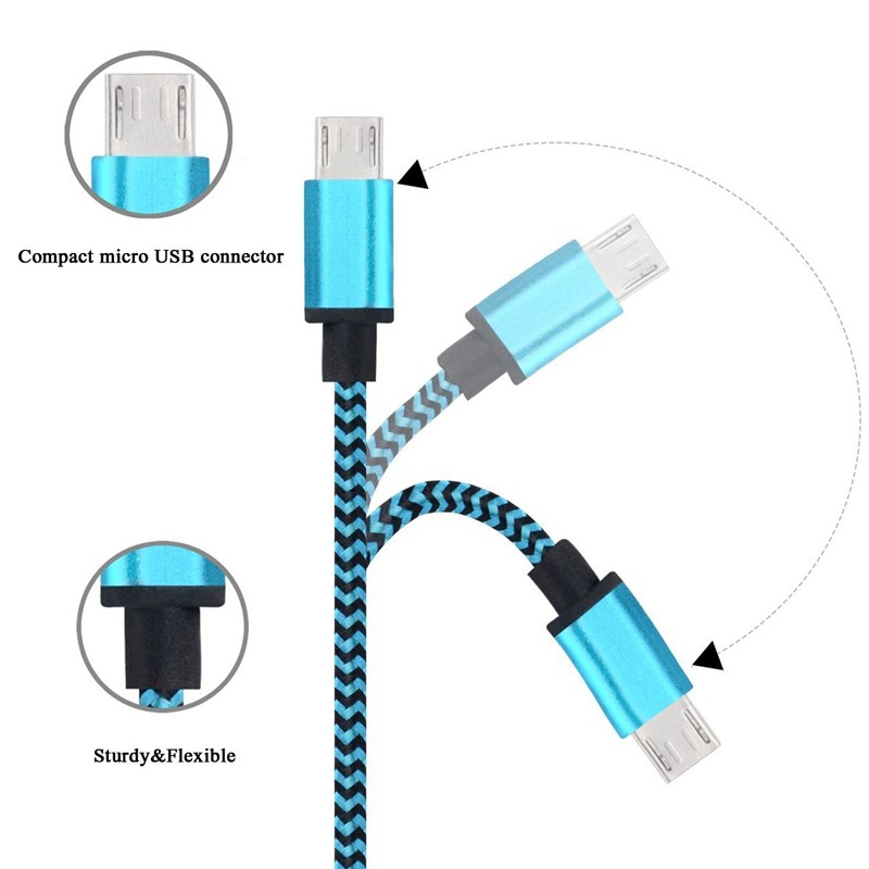 Micro USB Braided Charger Cable for Samsung iphone Extension Woven 1M Wire Data Sync Nylon Line 5 pin