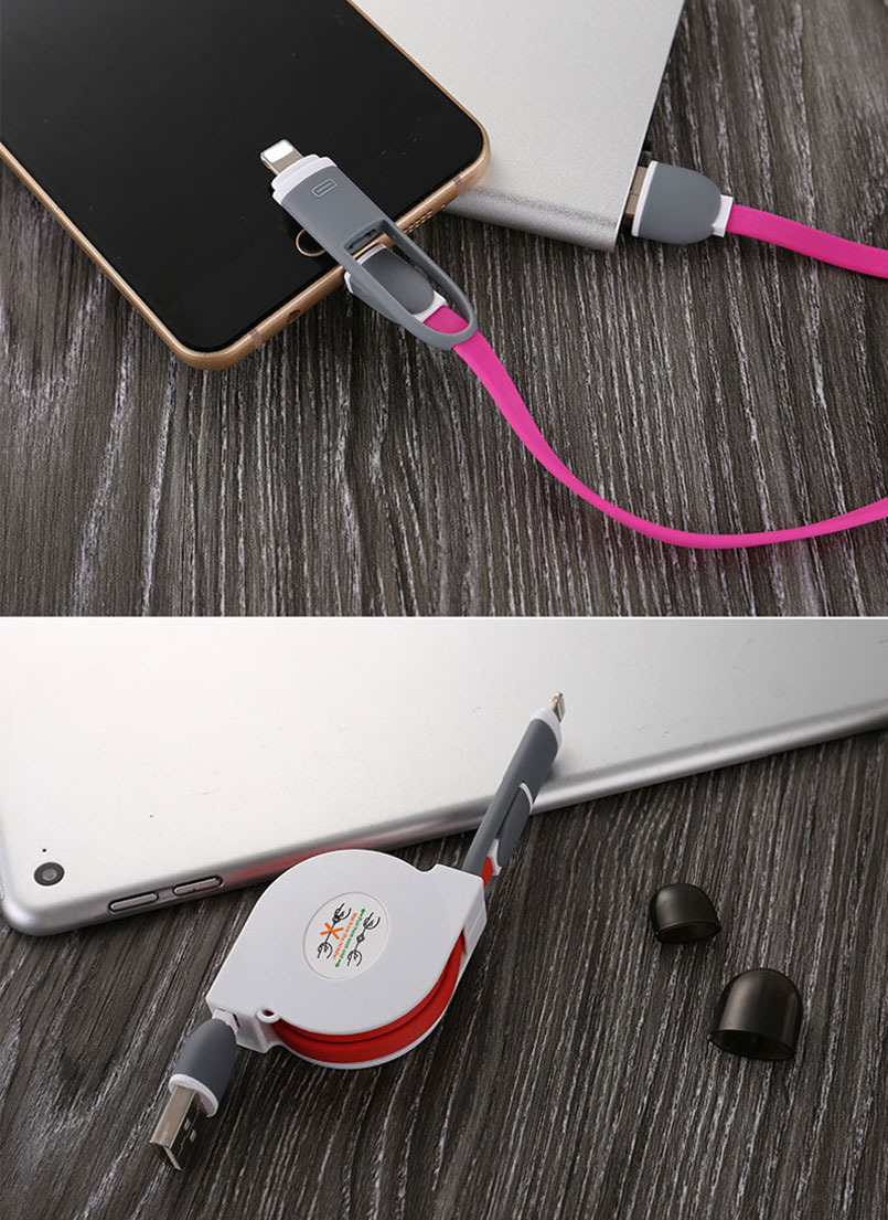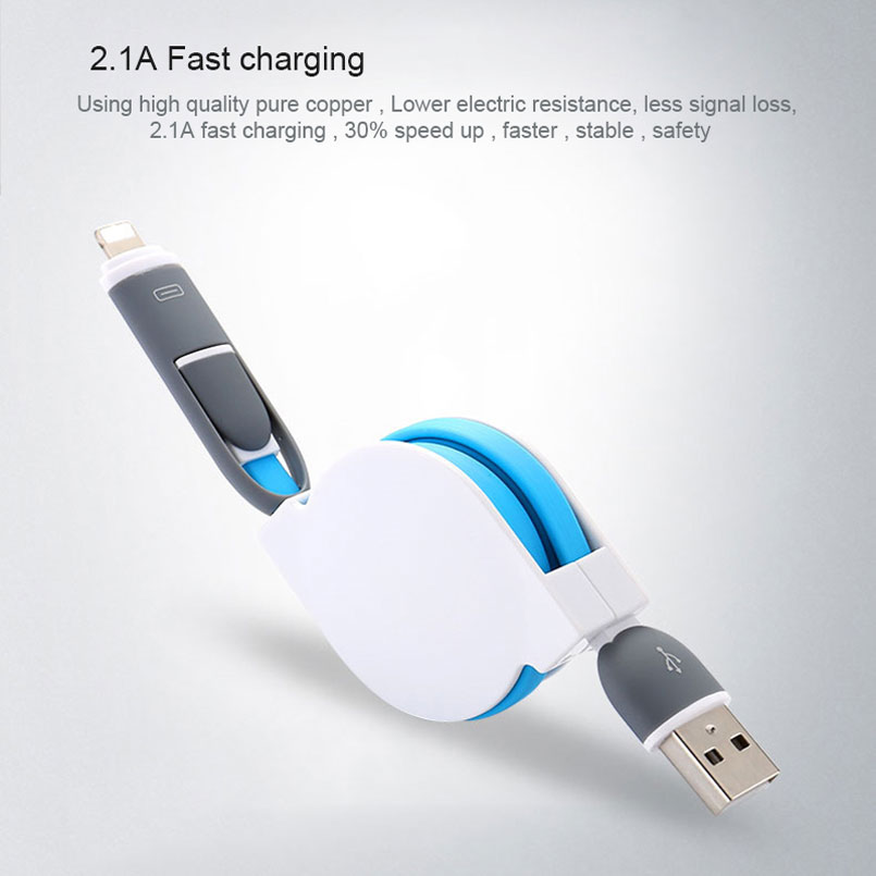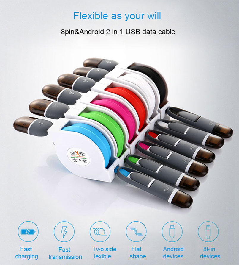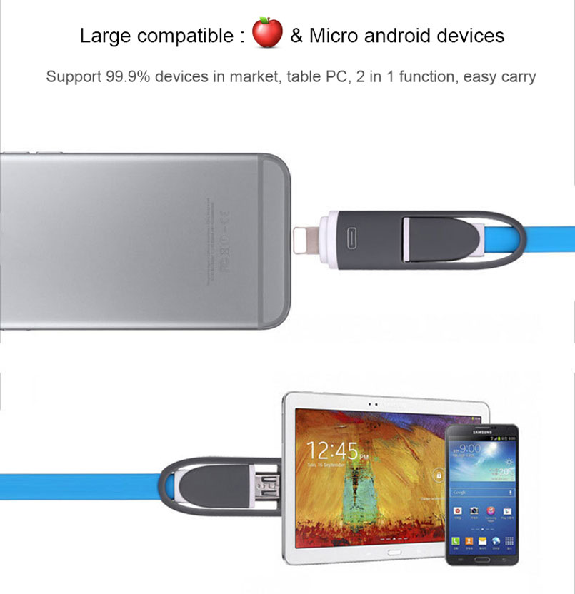 Factory direct sale cheap smart phone accessories usb 2 in 1 cable for i6 i7 android charging cable 1m