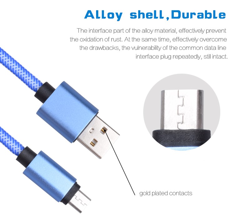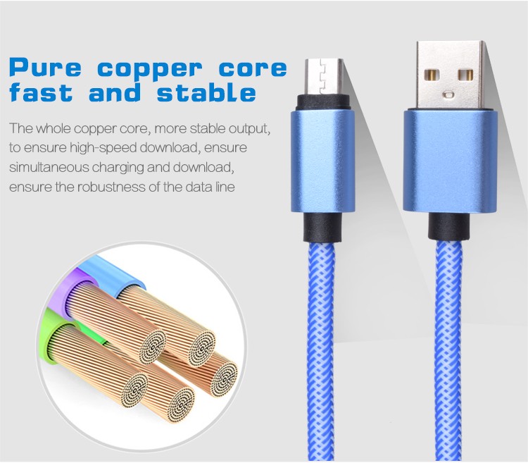 Hotselling Samrtphone Micro USB Cable, High Speed Nylon Braided Micro USB Cable/