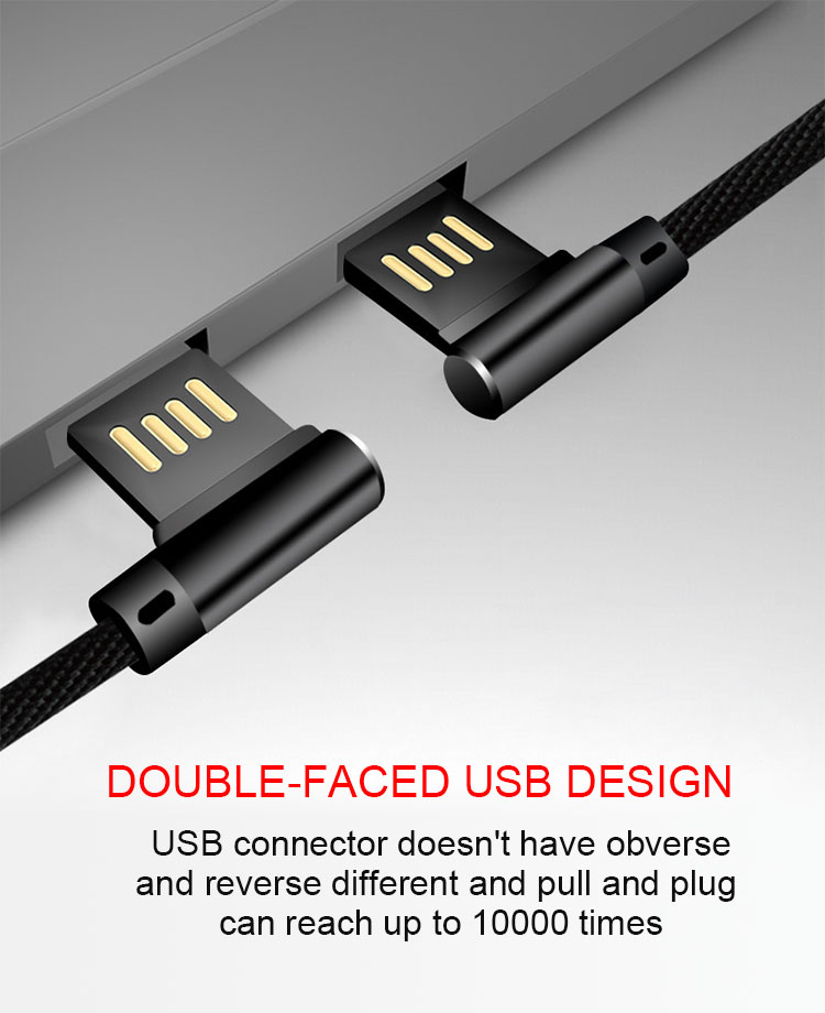 Hengye Fabric Cloth Double Faced Plug Design 90 Degree Elbow USB Adapter Data Charging Cable For Mobile Phone Games