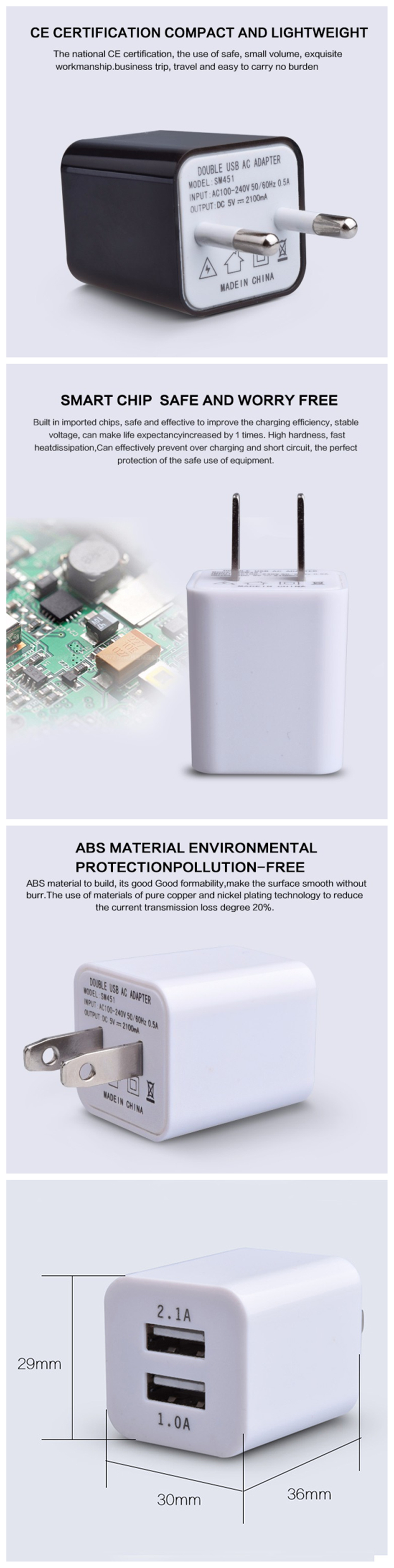 5v 2.1a usb power adapter Travel Wall Charger for iphone