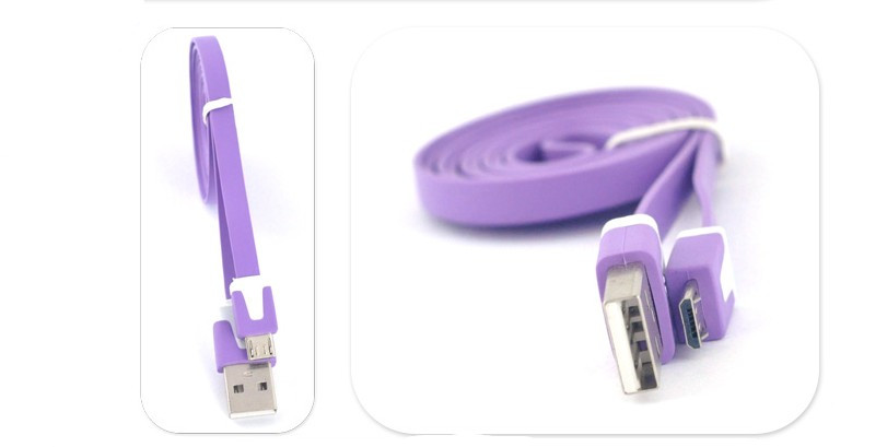 此款USB 2.0数据线适用于所有的Micro USB接口手机,连接到电脑上的USB端口来有效进行数据传输和充电,也可连接到USB电源适配器到电源插座进行充电。多种颜色的面条式的外观设计,色彩鲜艳并且比传统的数据线更加耐用。